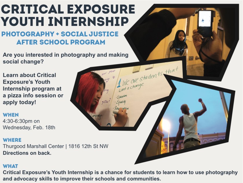Critical Exposure open house for those interested in learning more a about photography and tools for social change.